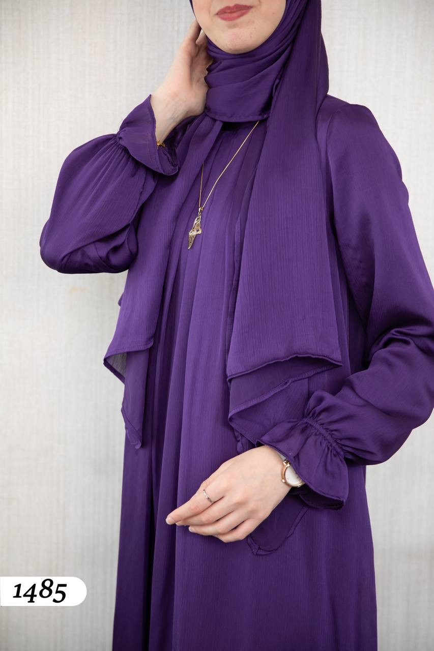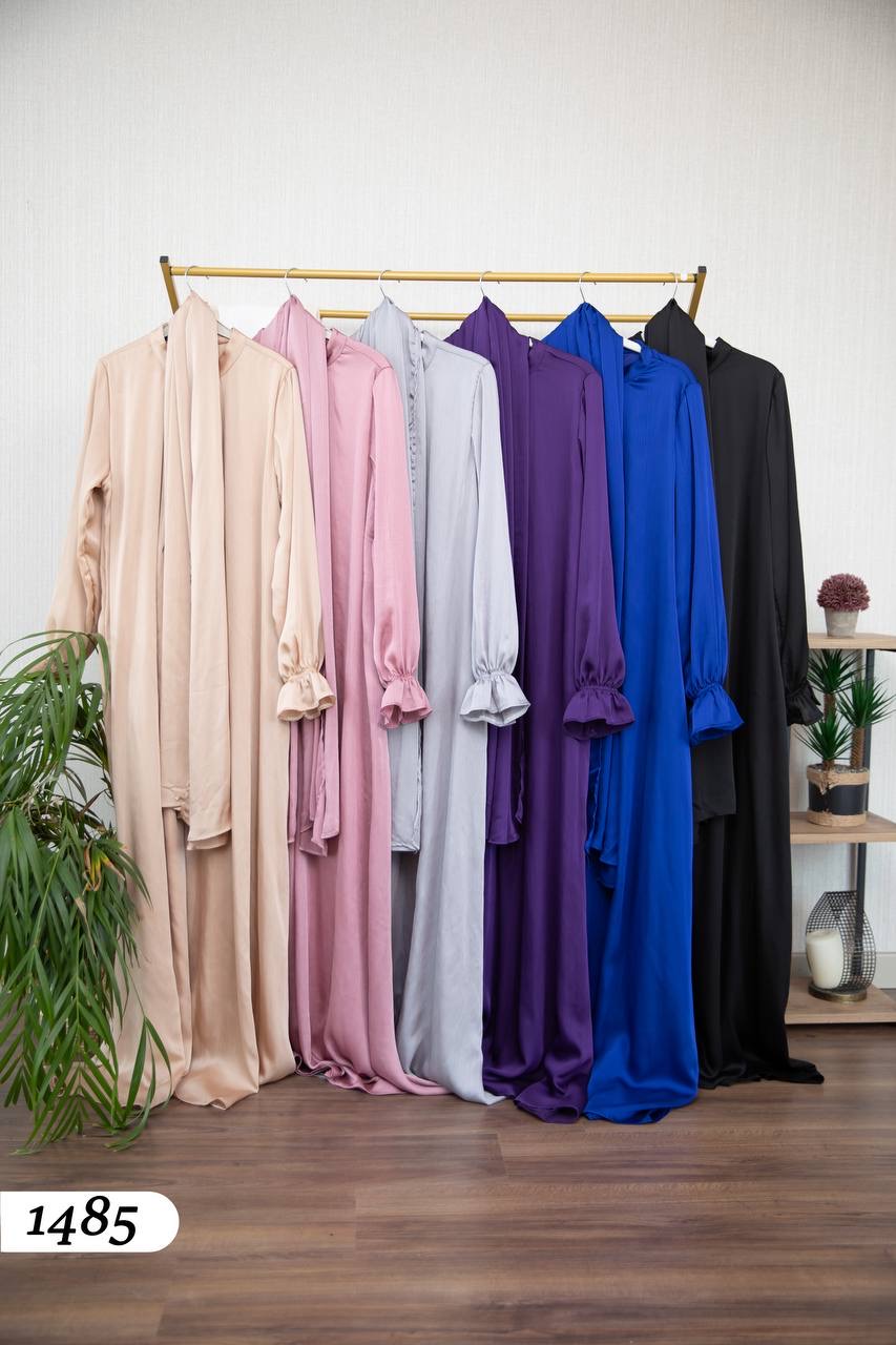 Ensemble Hijab 2 pièces – Hijab + Châle | Tissu Satin Yuri ✨
