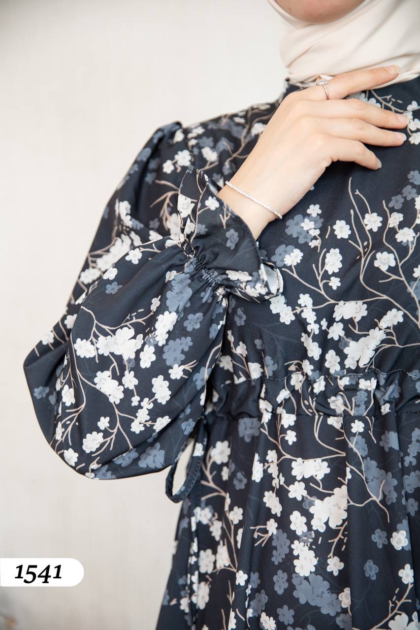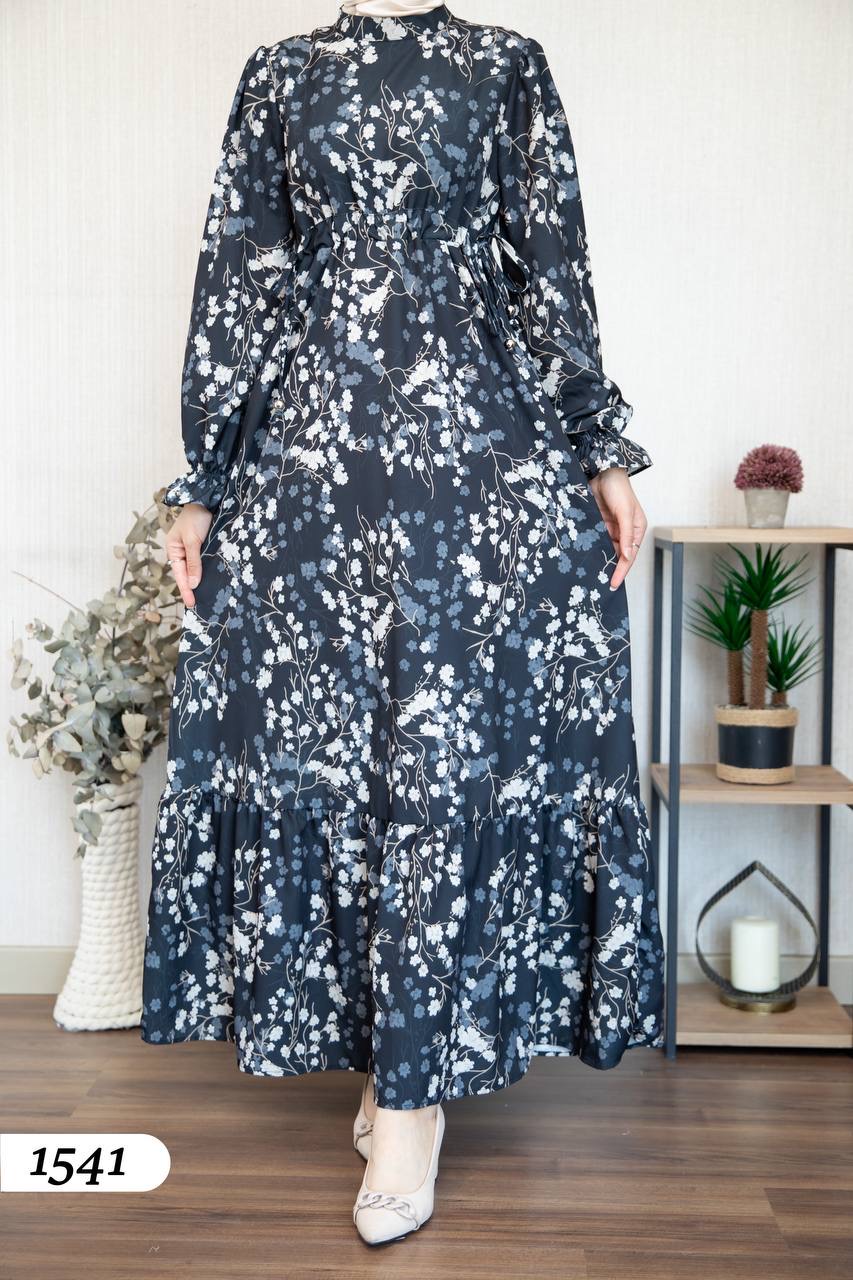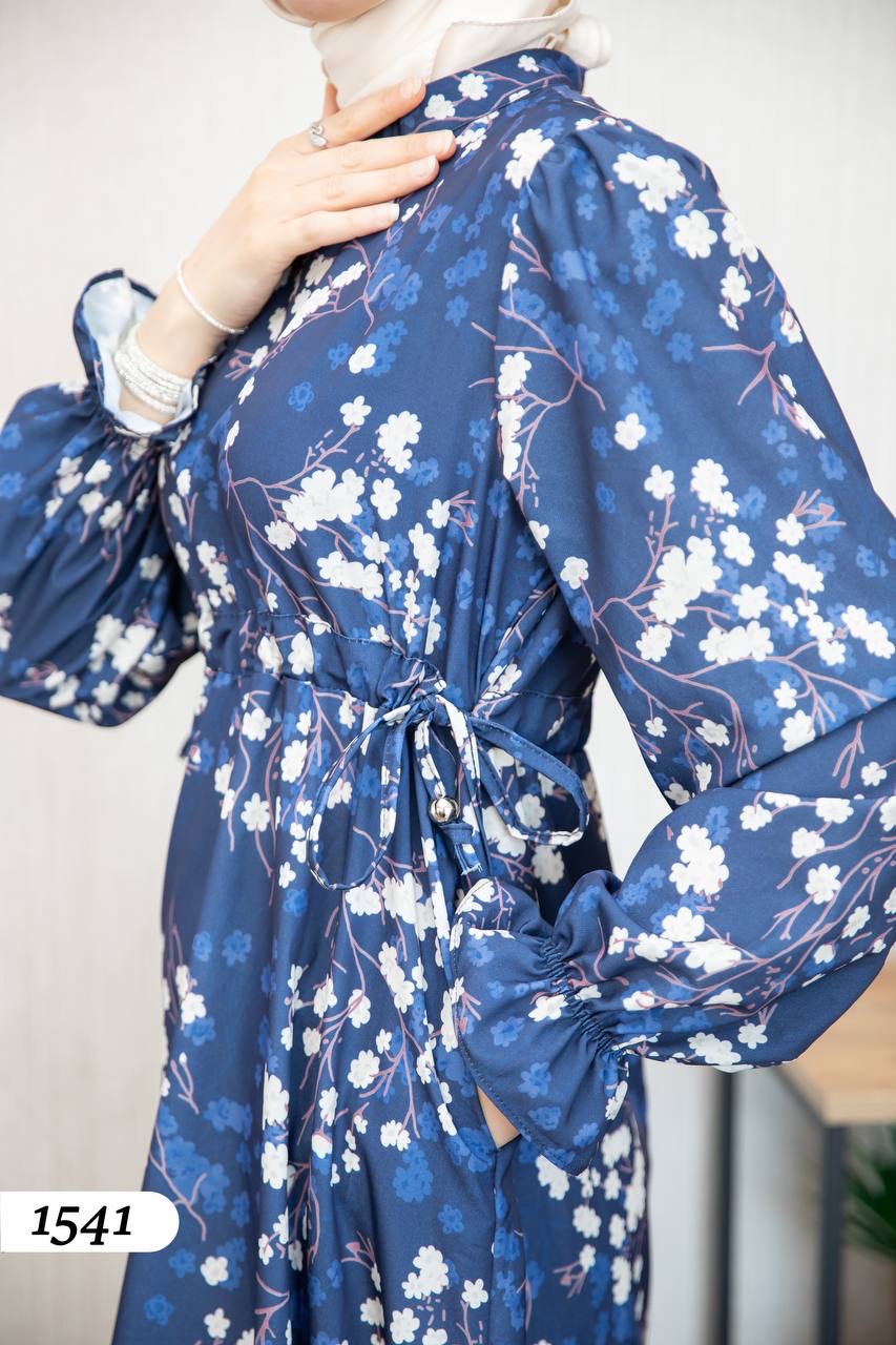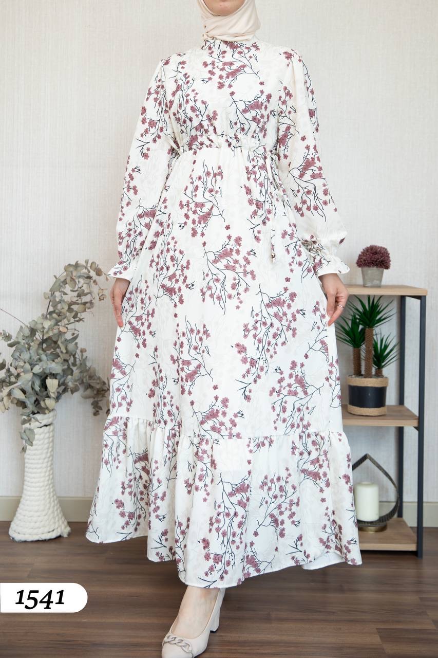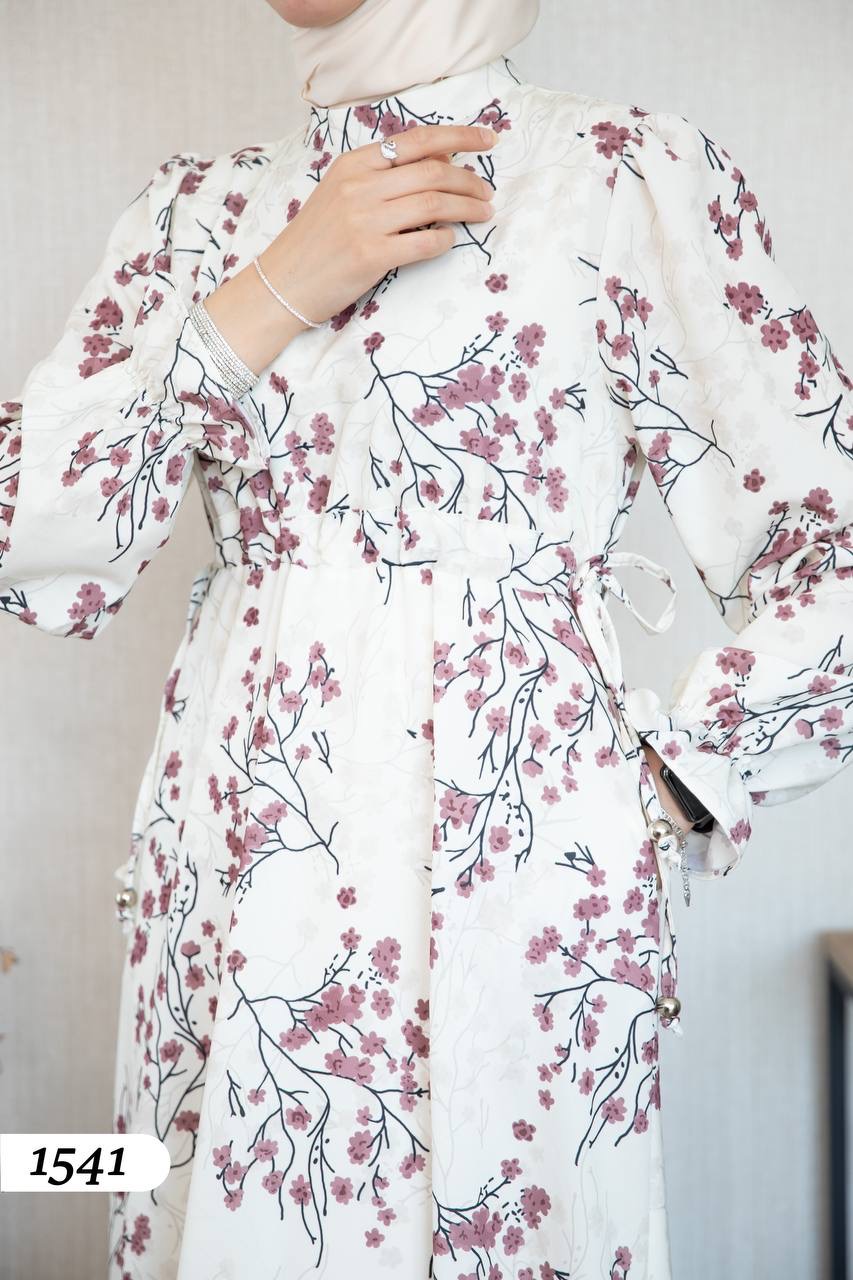 Robe d’élégance turque en Crêpe Cristal imprimé – Motif fleurs de cerisier 🌸