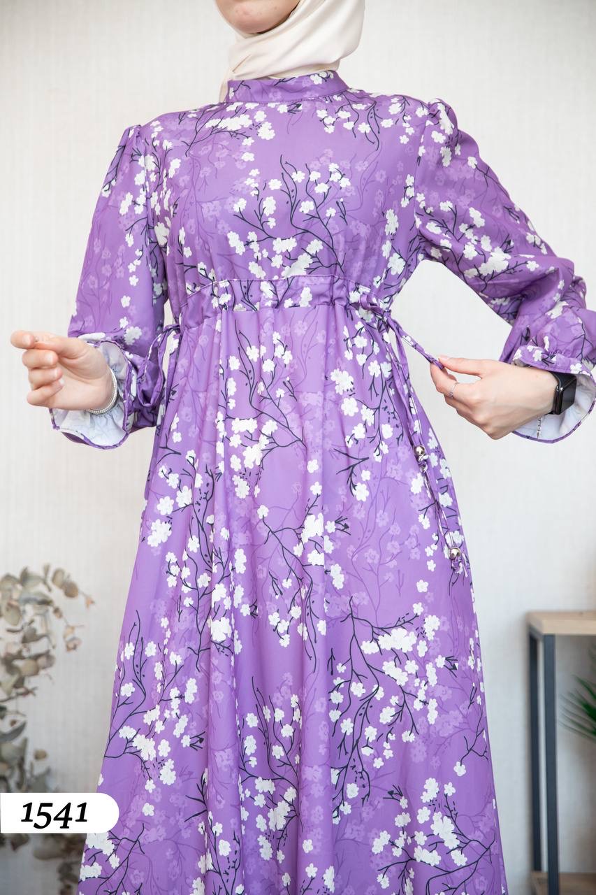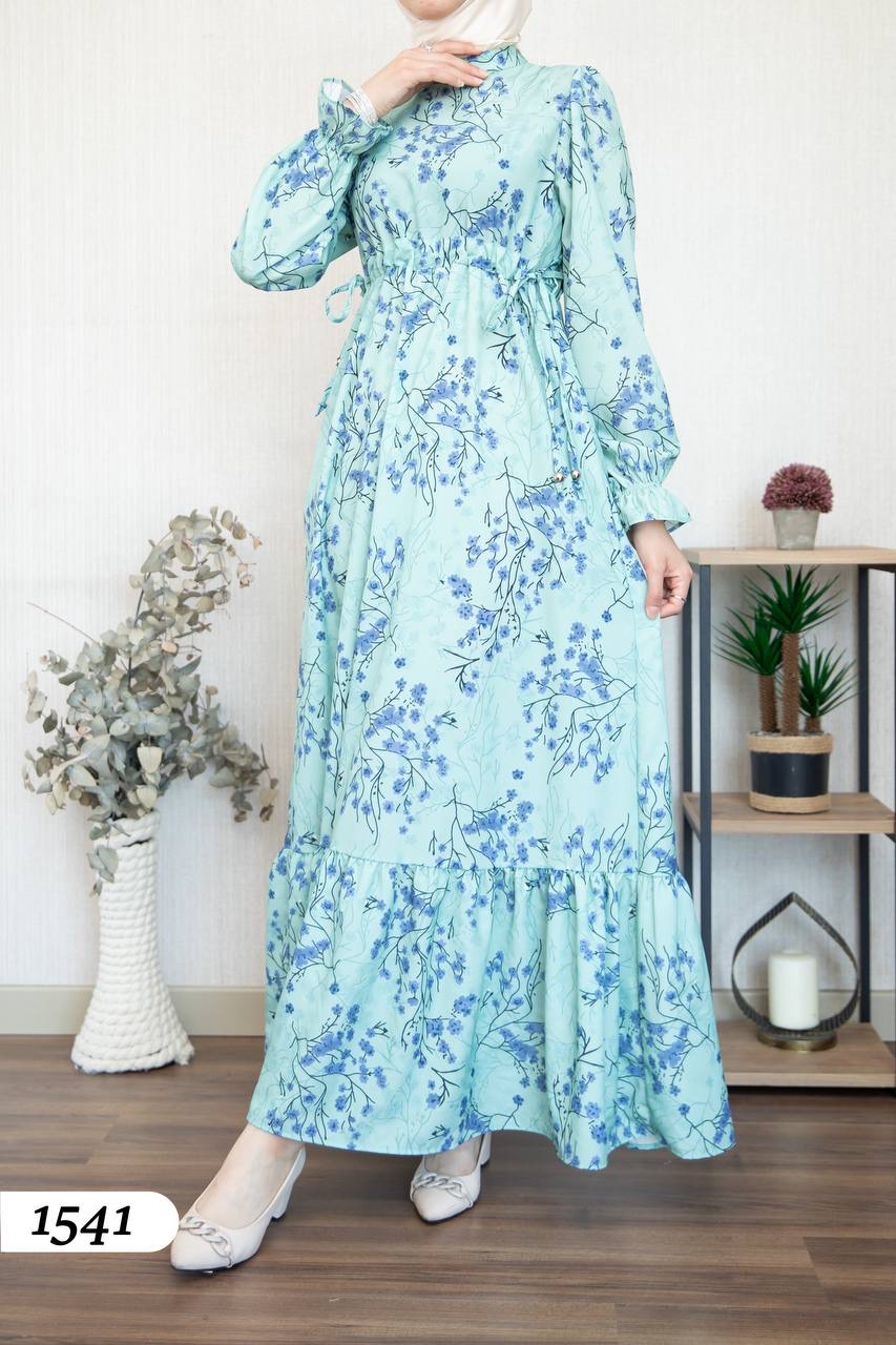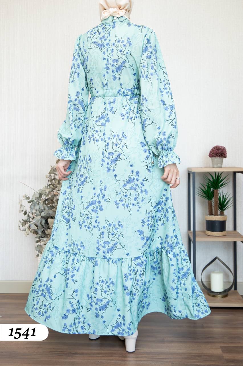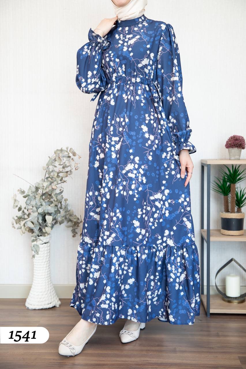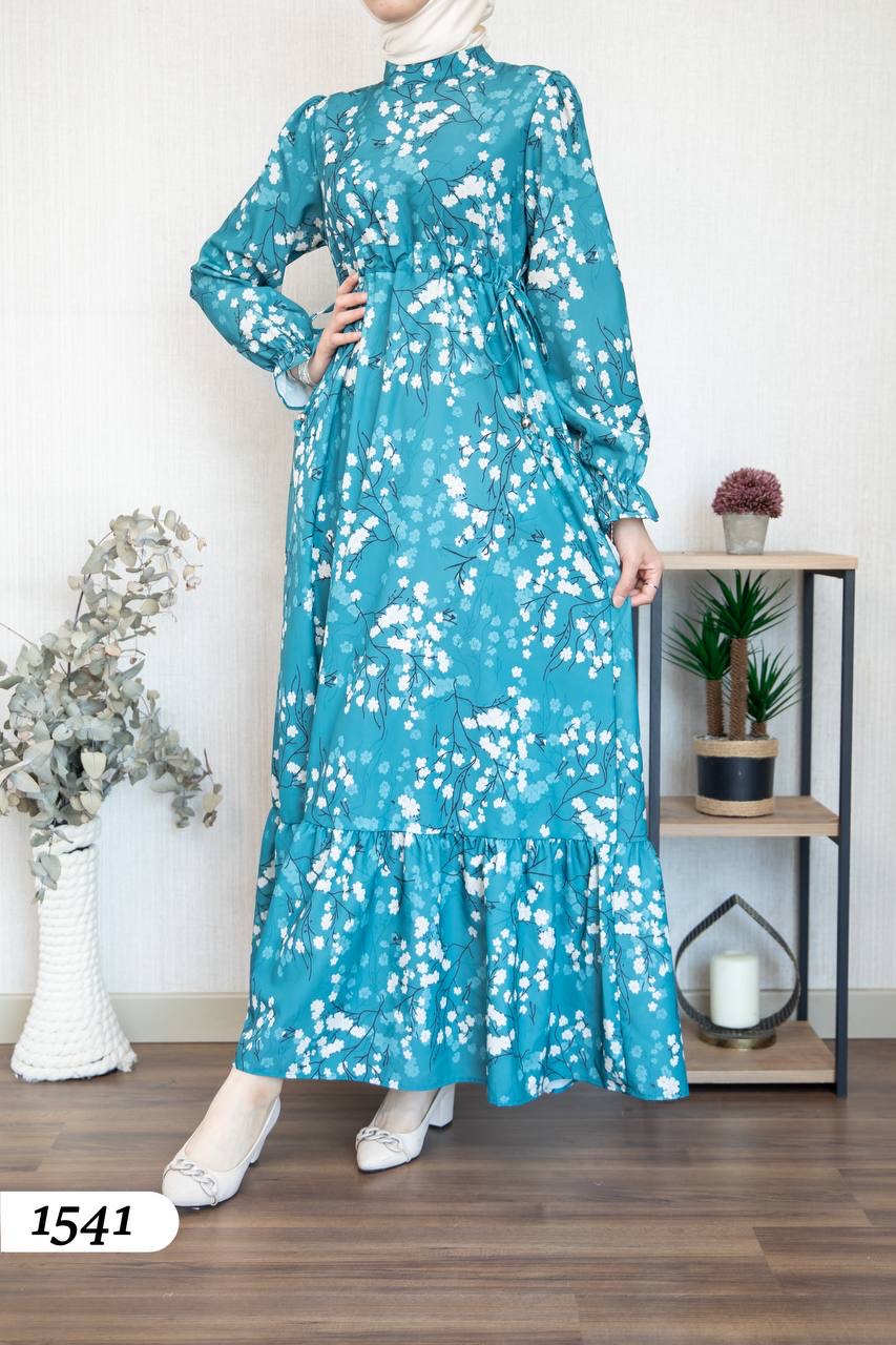 Robe d’élégance turque en Crêpe Cristal imprimé – Motif fleurs de cerisier 🌸