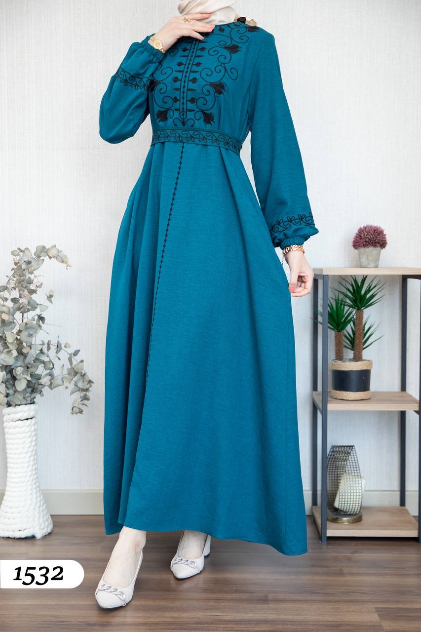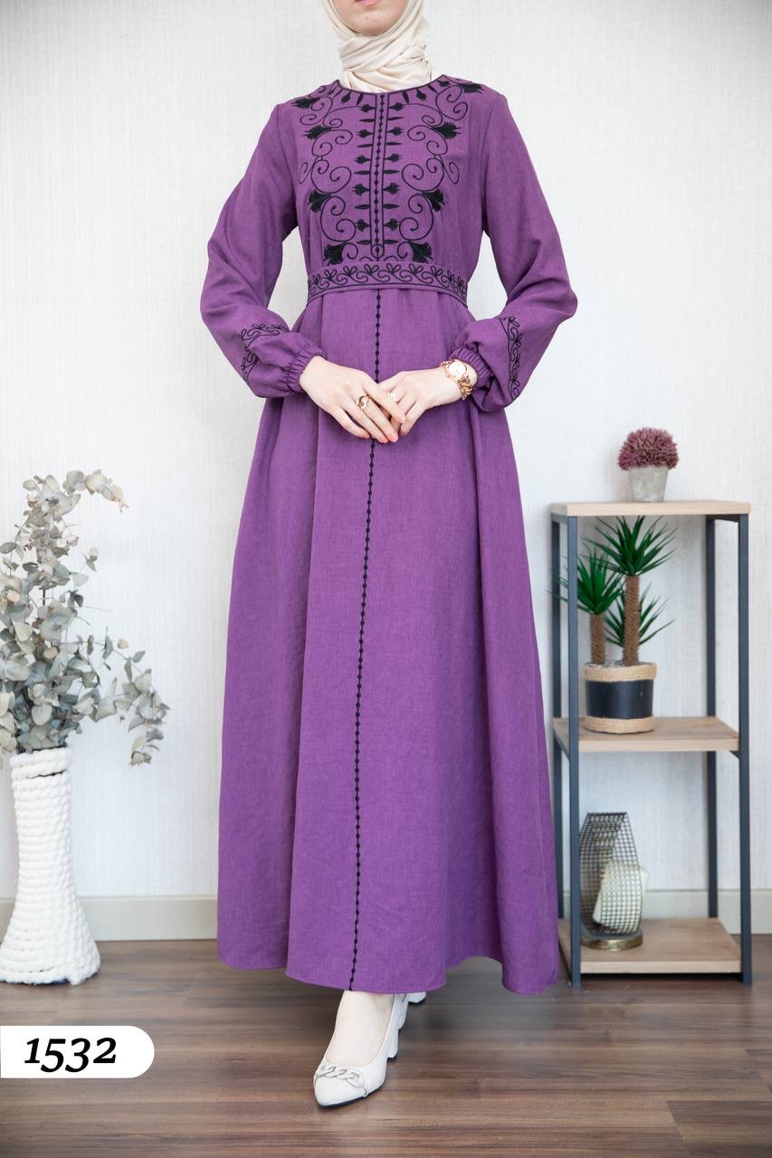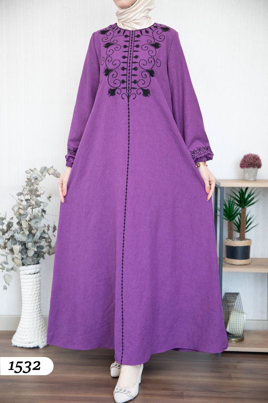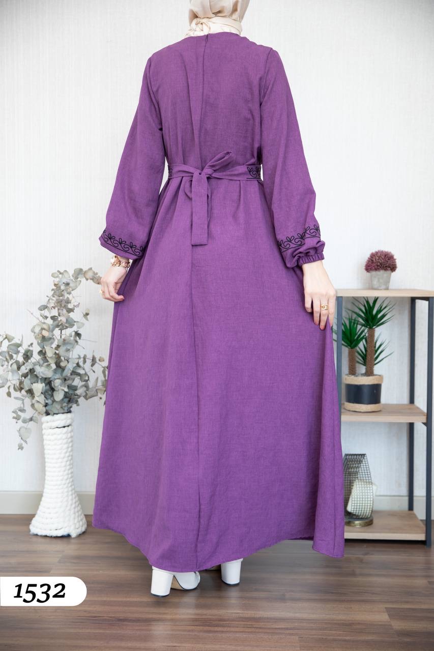 Robe élégante en lin mélangé, légère et confortable 🌿. Elle se distingue par une broderie noire à l’avant et aux extrémités des manches.