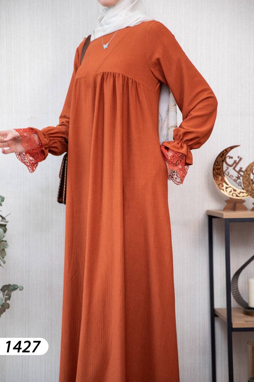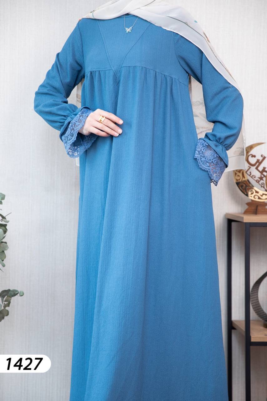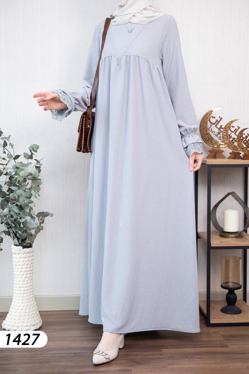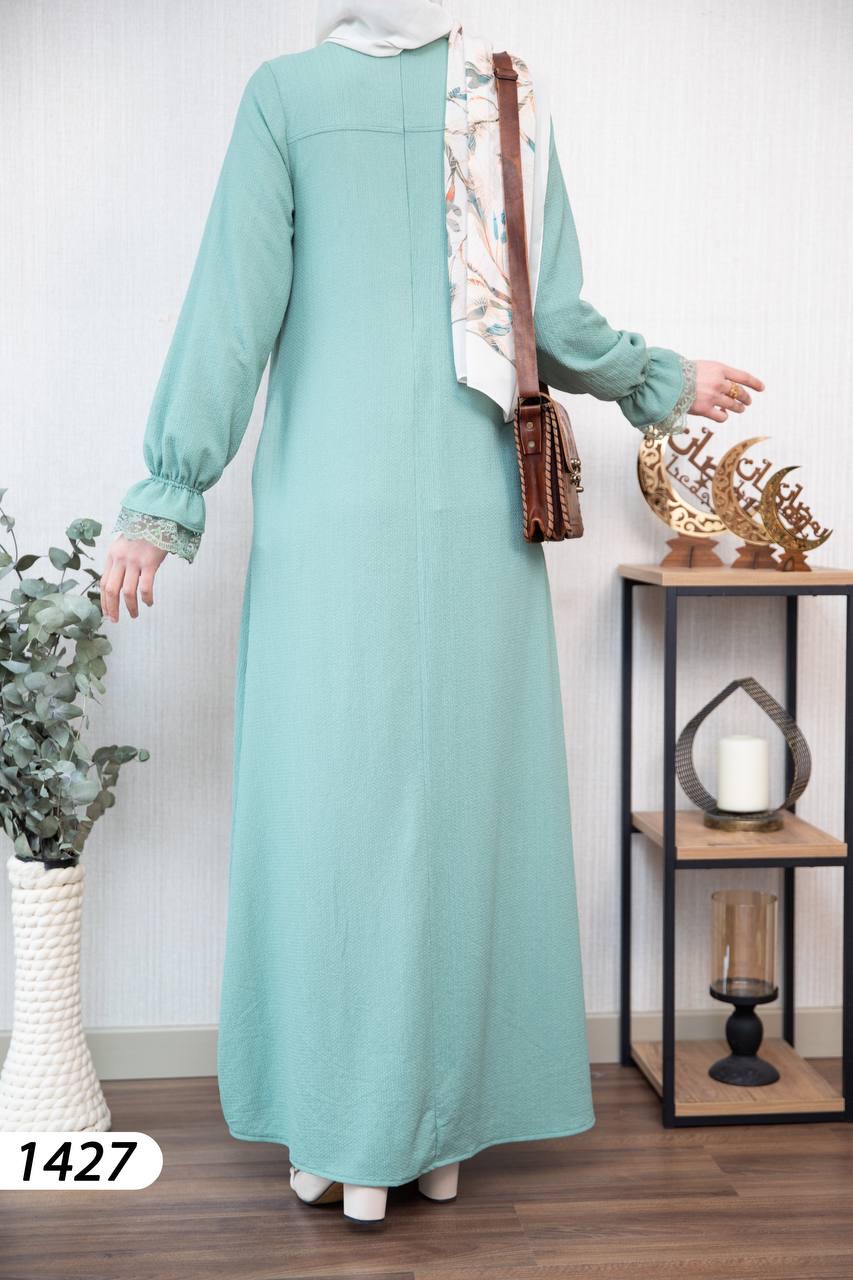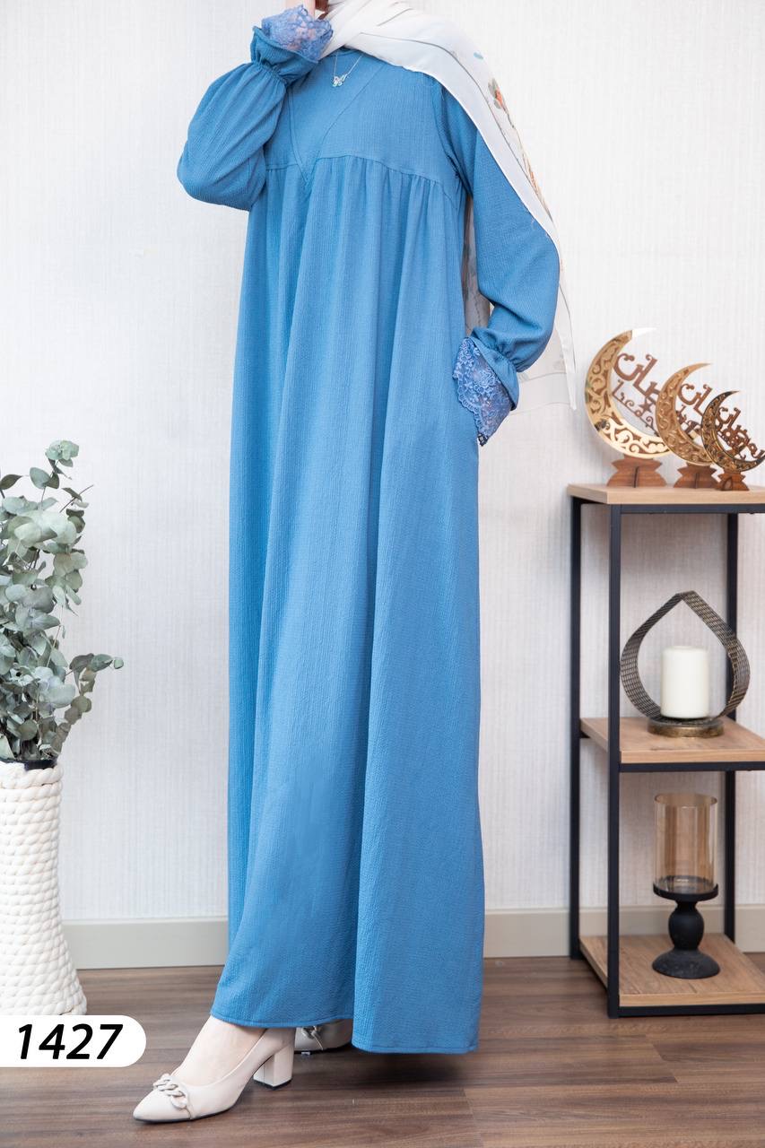 Robe élégante et confortable en tissu Borujouk lin, légère et agréable à porter 🌿. Elle se distingue par des détails en dentelle raffinée aux extrémités des manches, apportant une touche féminine et délicate. Sa coupe large et fluide offre confort et élégance au quotidien, idéale pour les femmes voilées.