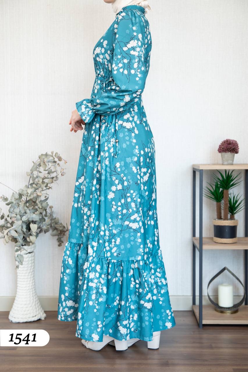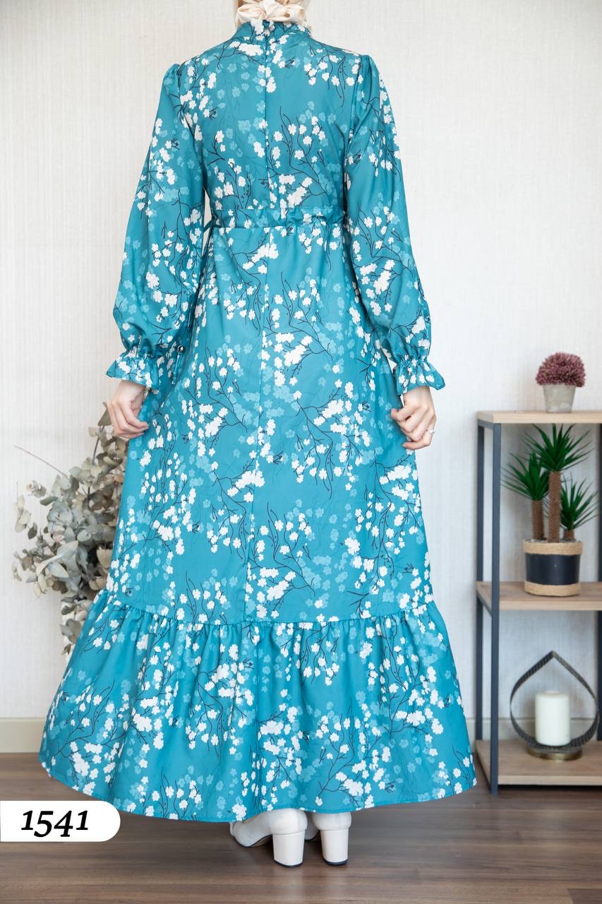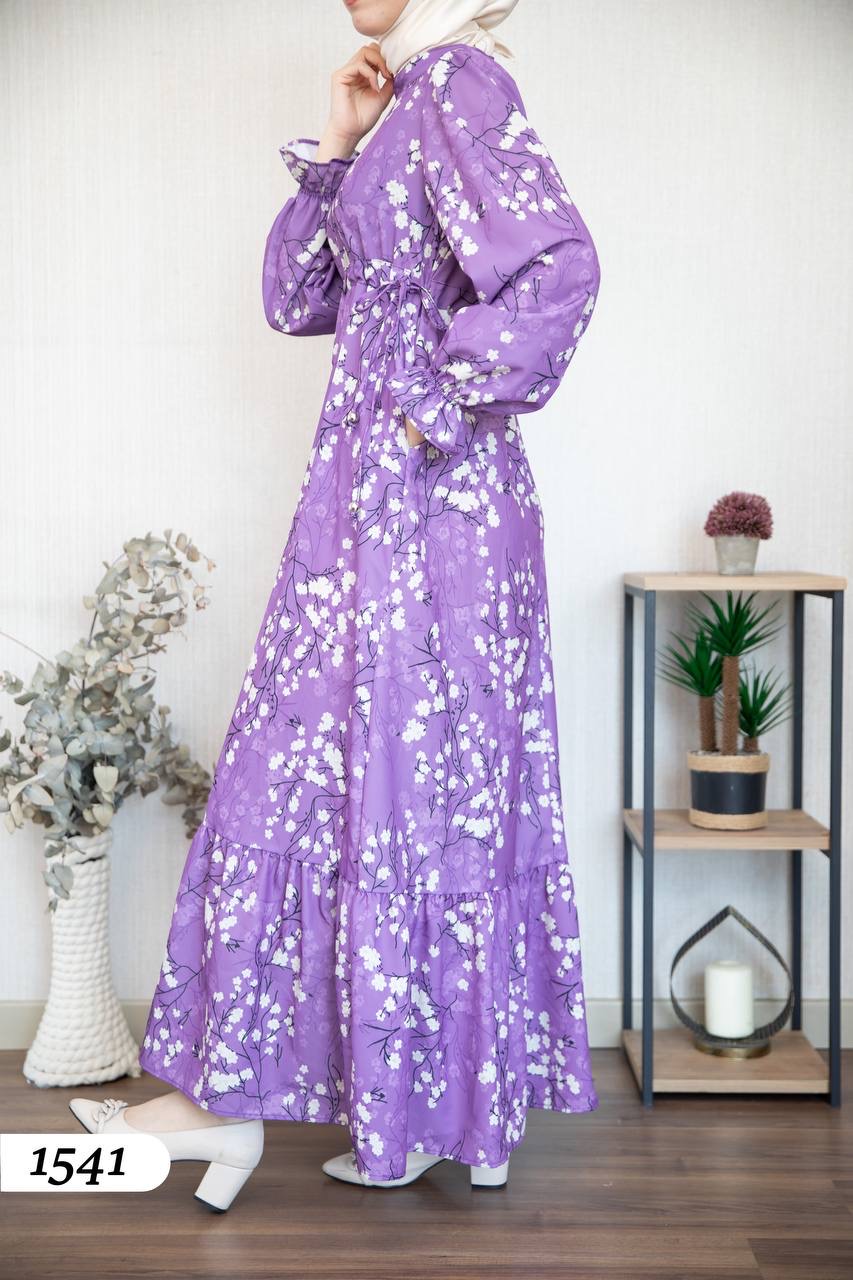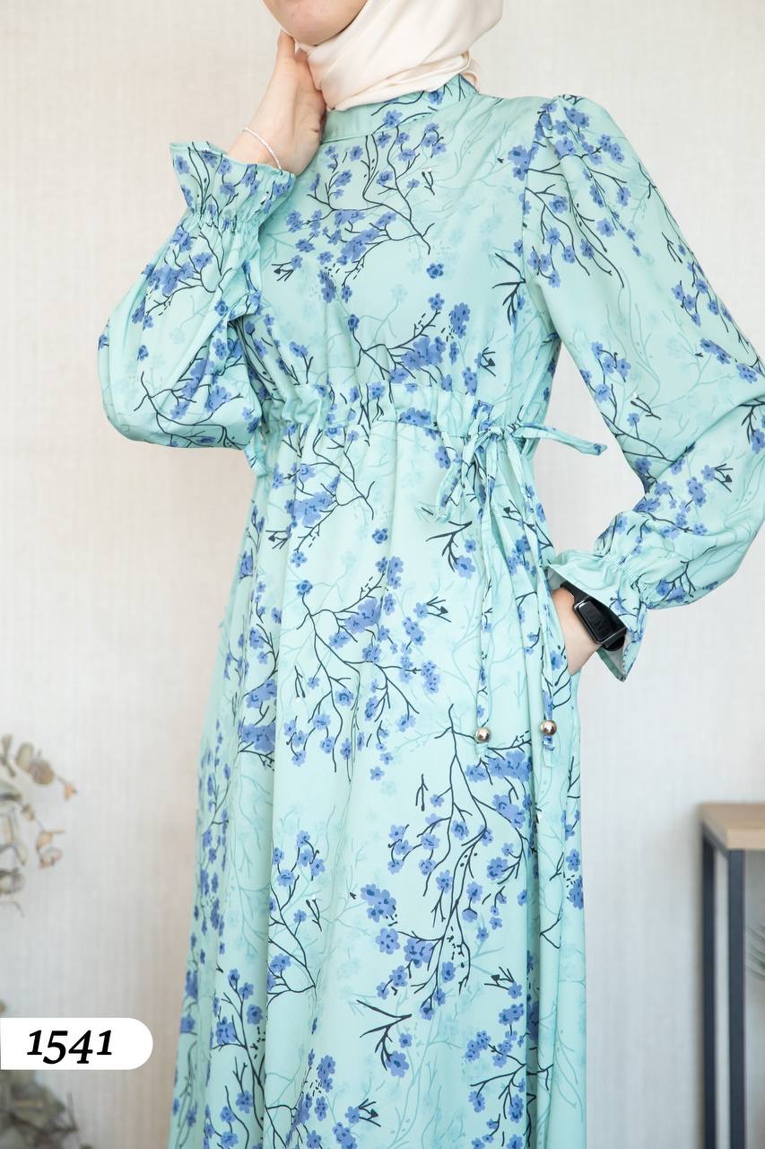 Robe d’élégance turque en Crêpe Cristal imprimé – Motif fleurs de cerisier 🌸