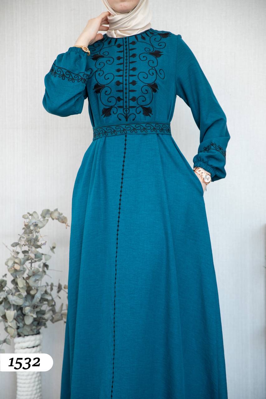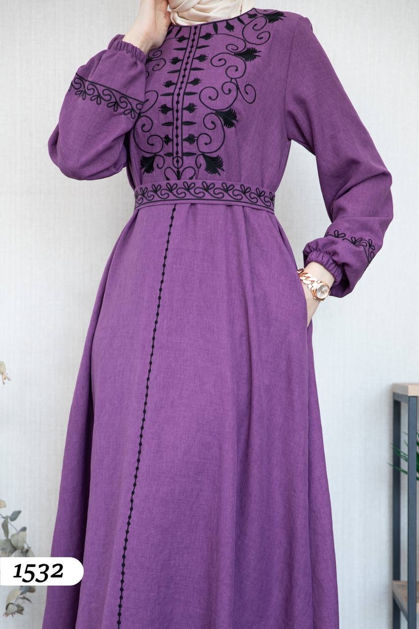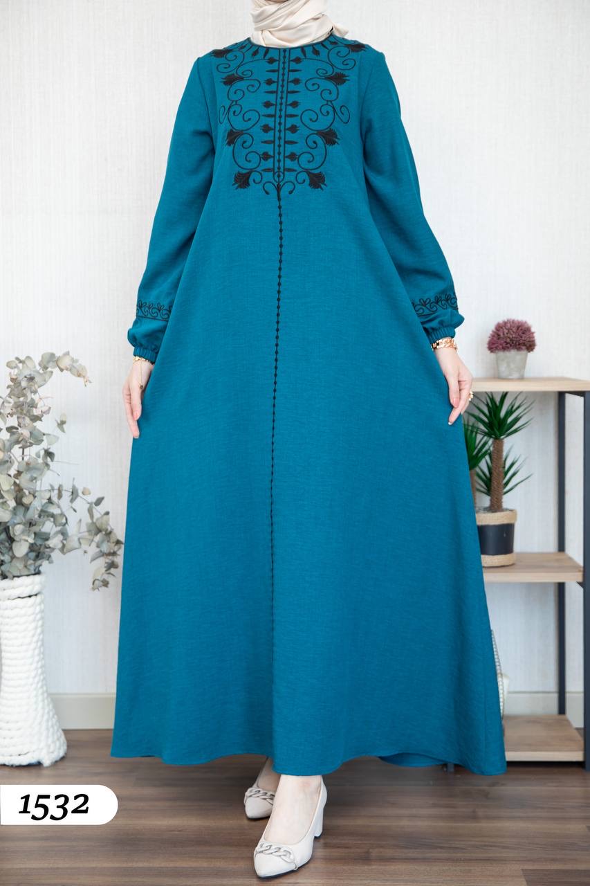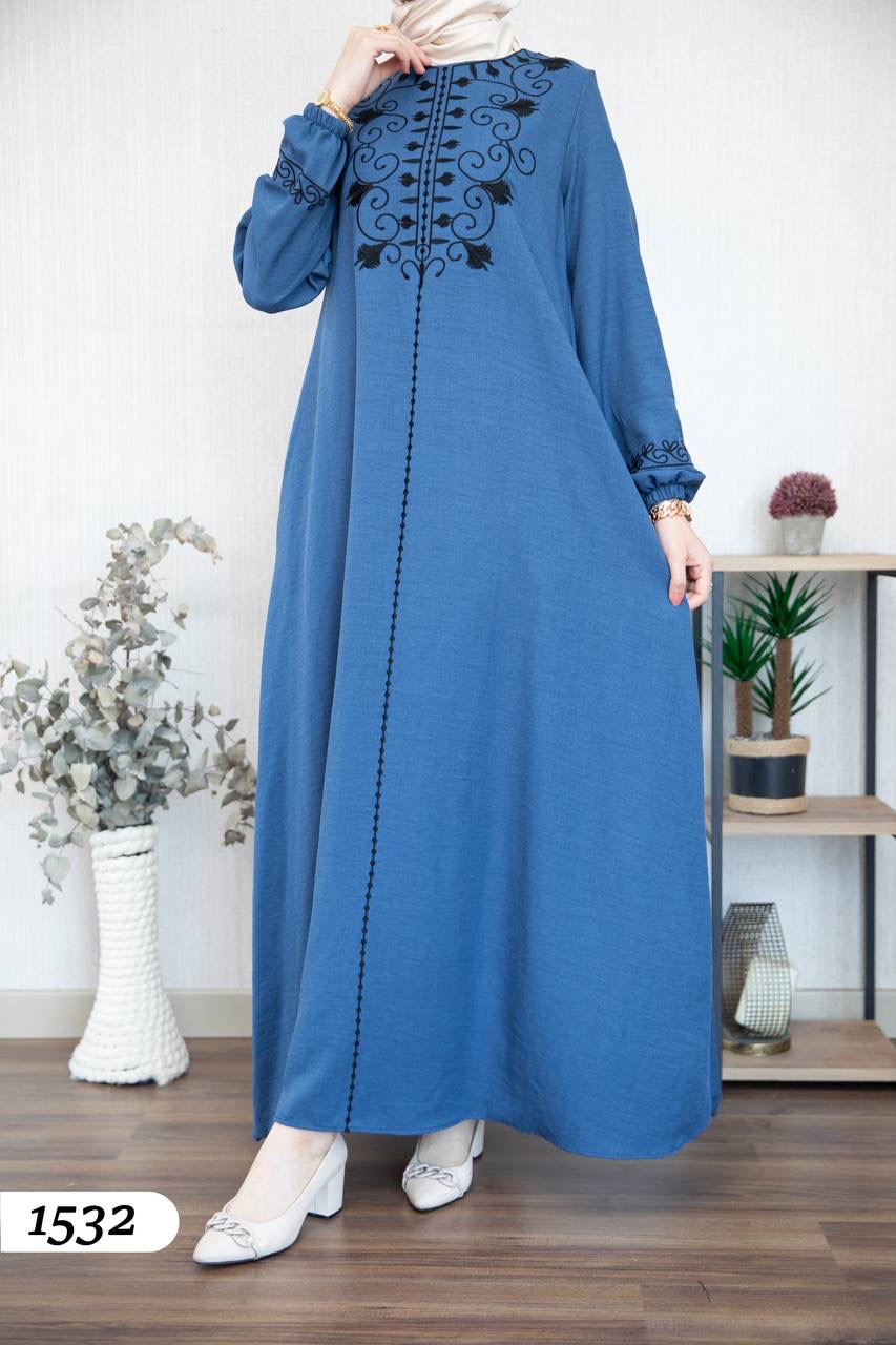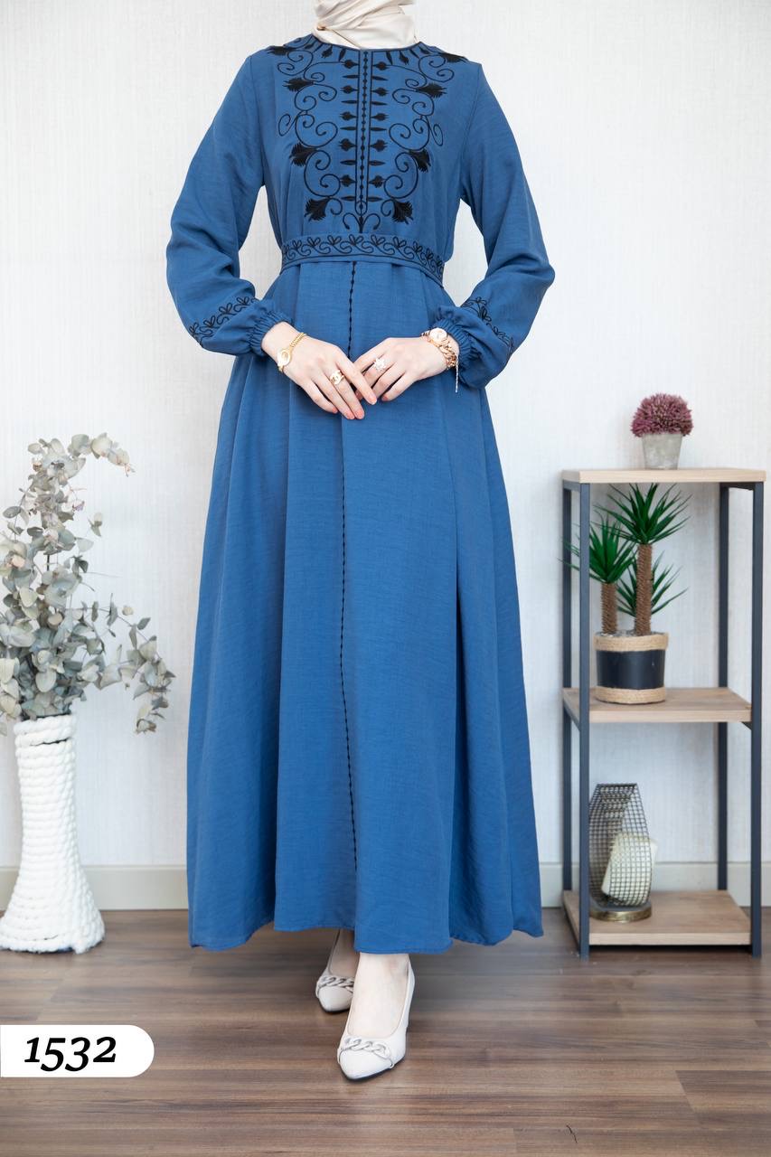 Robe élégante en lin mélangé, légère et confortable 🌿. Elle se distingue par une broderie noire à l’avant et aux extrémités des manches.