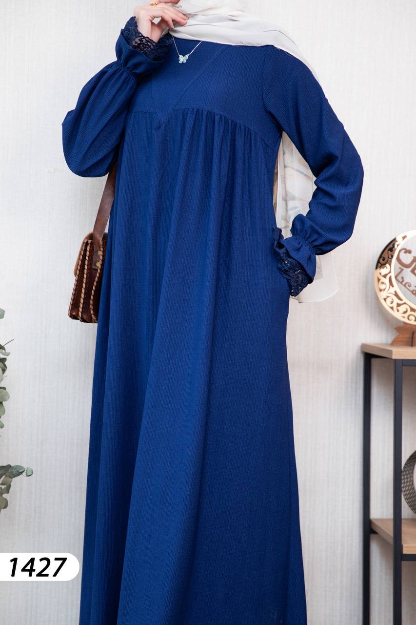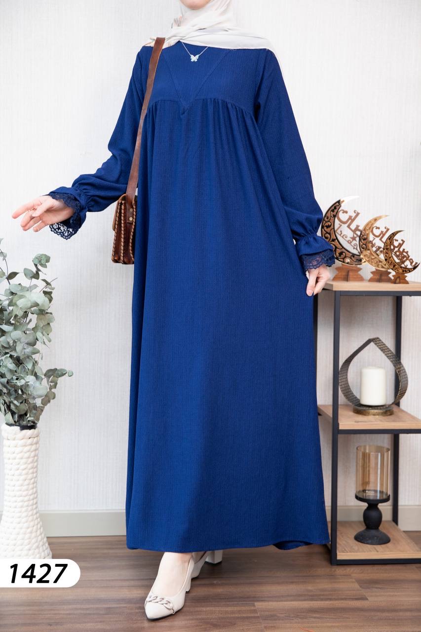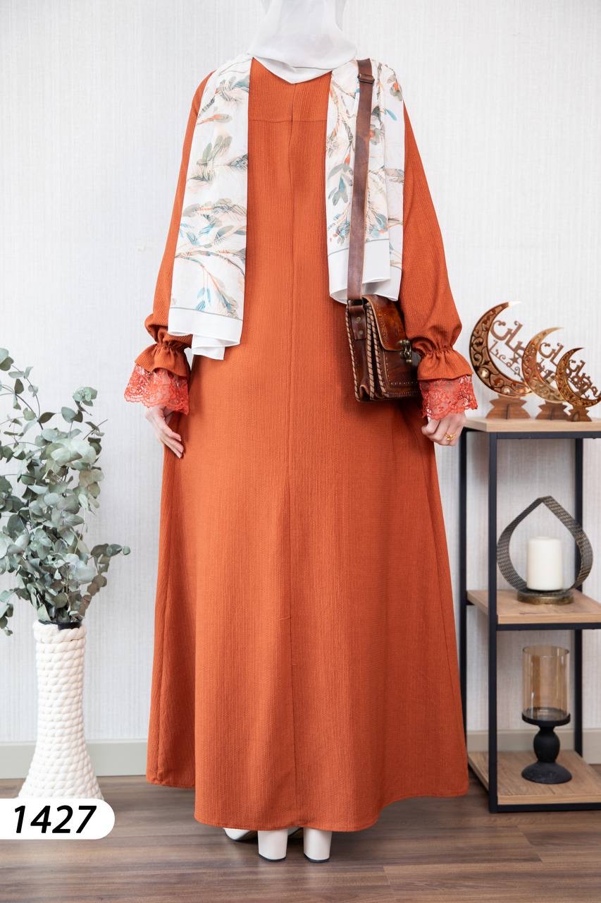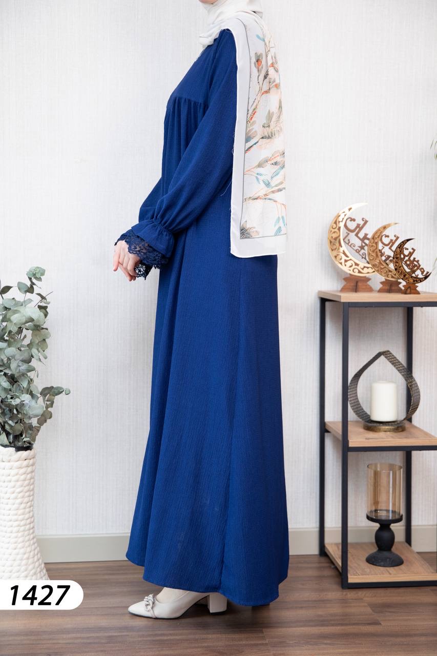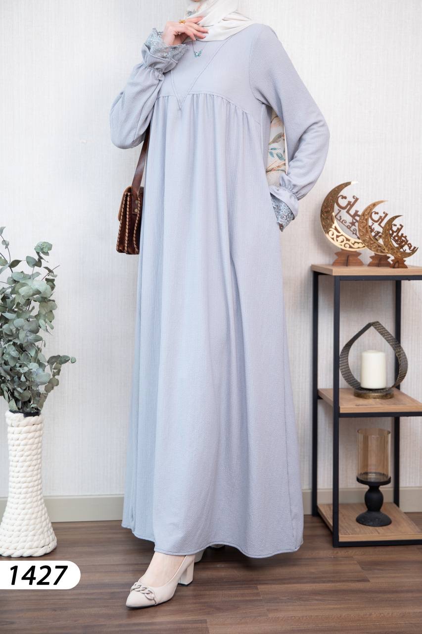 Robe élégante et confortable en tissu Borujouk lin, légère et agréable à porter 🌿. Elle se distingue par des détails en dentelle raffinée aux extrémités des manches, apportant une touche féminine et délicate. Sa coupe large et fluide offre confort et élégance au quotidien, idéale pour les femmes voilées.